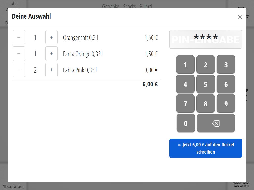 Schnell die Produktauswahl sicher mit PIN-Code auf den eigenen Deckel geschrieben. Fertig ist der Einkauf.